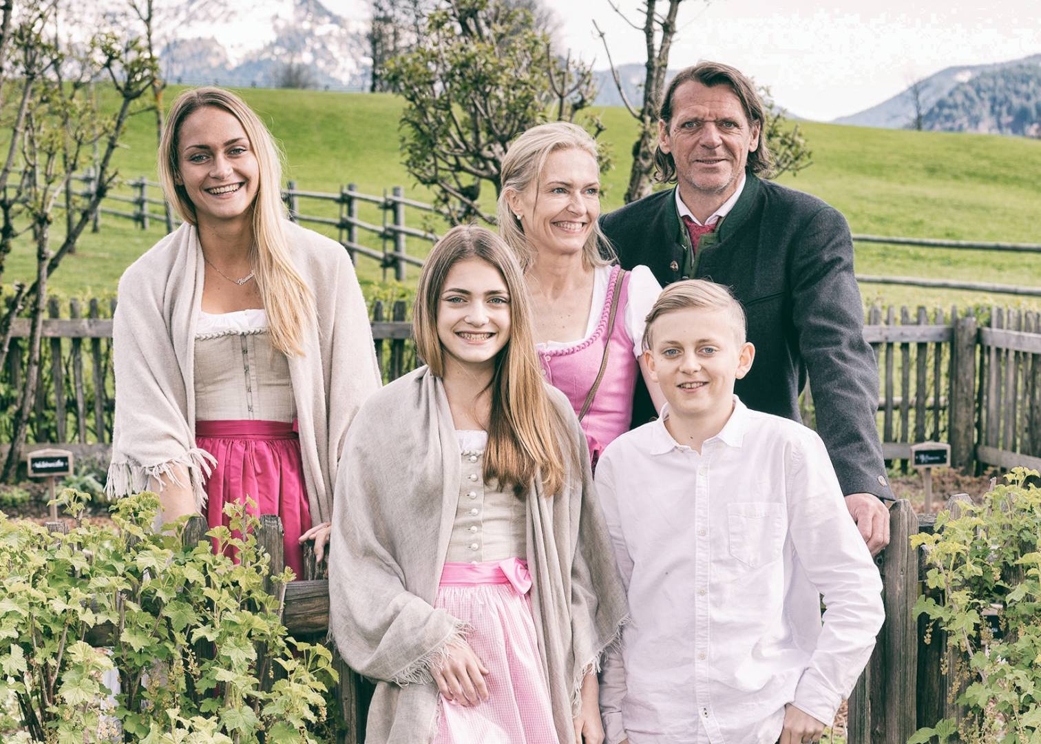 Stefan und Maria Mooslechner mit Hannah, Magdalena, Lukas & die Berg-Leben Crew