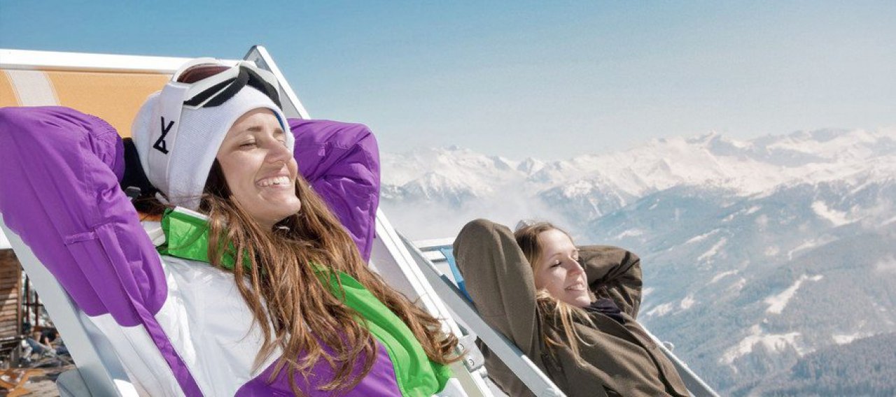 Nachdem die meisten Pisten bestritten wurden, darf eine wohlverdiente Pause mit einem Erfrischungsgetränk auf der Sonnenterrasse nicht fehlen.
